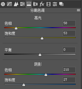 下面进行色彩调整,首先整体调整,后期调色思路3:画面高光加入暖色黄绿色、阴影加入冷色,且加入高光的暖色黄绿色要多于冷色,让整个画面以暖色黄绿色为主。