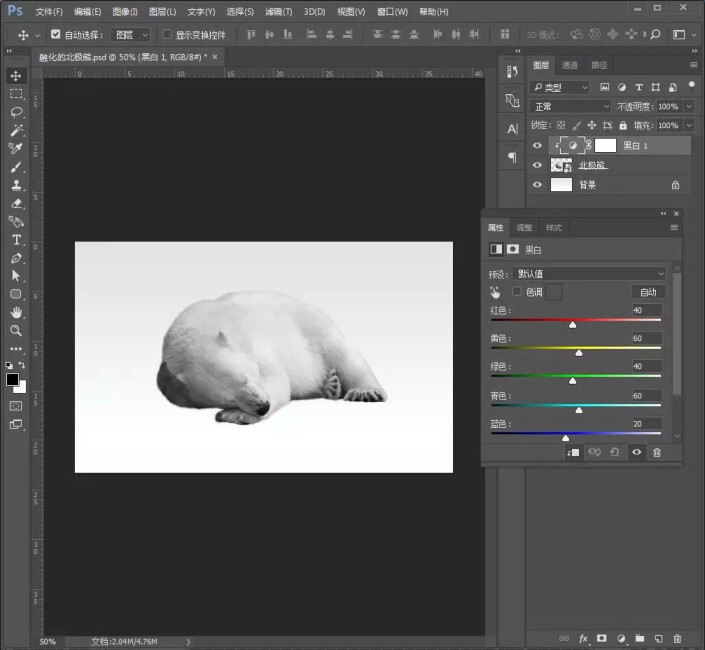 2.给北极熊添加【黑白】调整图层并创建剪贴蒙版http://www.yuucn.com/tags/38847/。