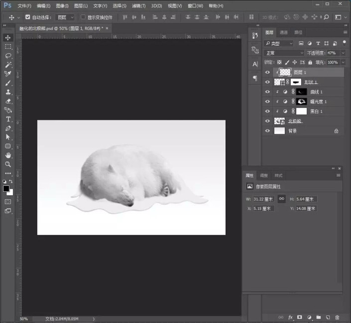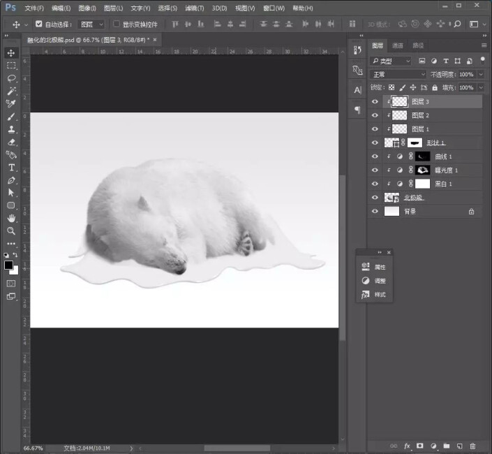 教程制作一只融化的北极熊,说是PS,其实是想呼吁关注环境,北极海洋生态正在恶化,北极地区的冰川如果消耗殆尽的话,必然会给人类的生存空间带来巨大的威胁,教程以生活在北极的北极熊作为素材,来制作一幅融化的北极熊的样子,寓意全球变暖,具体如何制作还是通过教程来学习一下吧,相信同学们也很想学会。