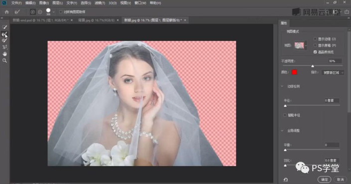 使用调整边缘画笔工具,在婚纱的部分涂抹就可以了