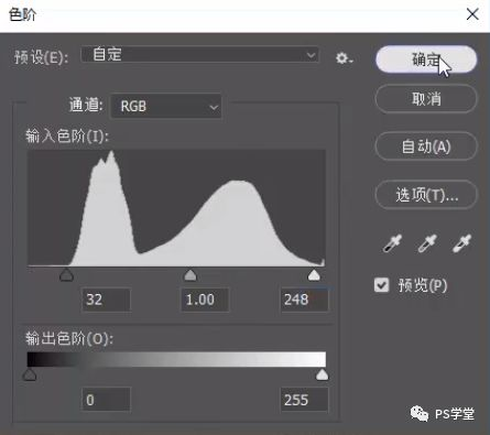 这样就显得自然多了,不过人物整体似乎有些偏灰,我们使用色阶来调整一下对比度