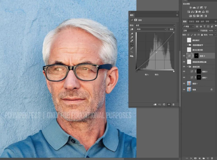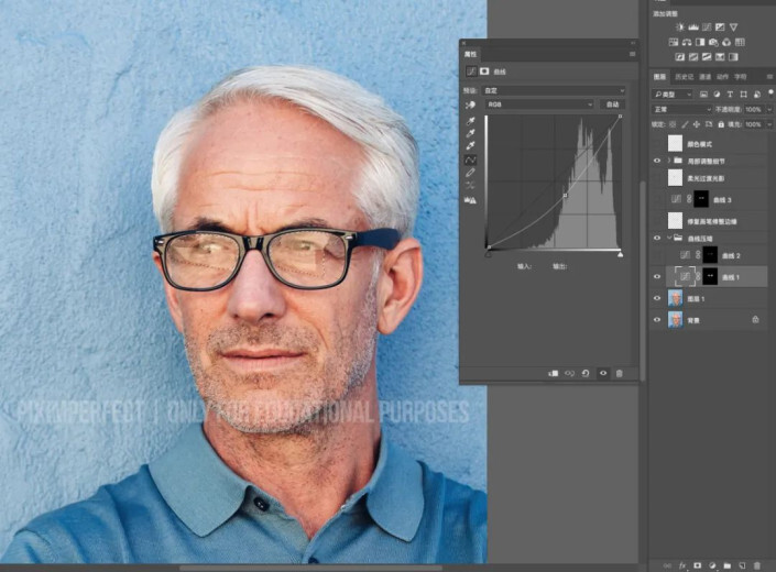 再次选中比较灰的区域,曲线微调压暗。