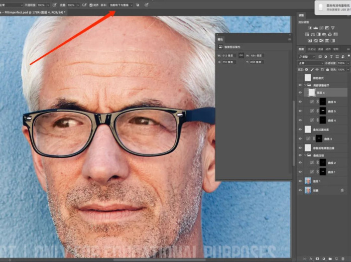 当然我们最后也可以盖印一层,适当锐化一下眼睛,看起来更加的清晰明亮。(我这里用的是usm)