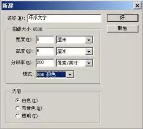 首先启动PHOTOSHOP,选择新建,将新建对话框设置如图1所示,注意所建图象的长宽要相等,这样我们才能得到一个正圆的环形。