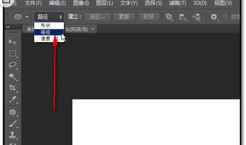 1、打开PS操作界面,新建文件;光标点“椭圆”工具图标;然后,在操作界面上方点选“路径”,如图中所示;