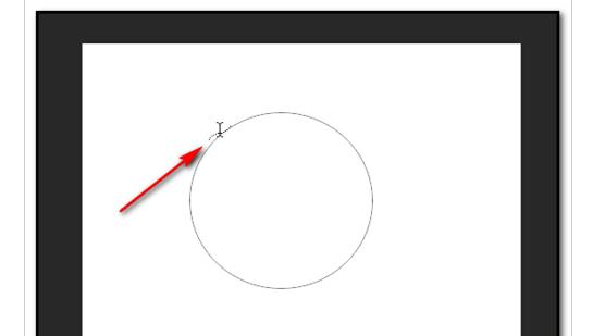 2、然后,画出圆形的路径;再点“文字”工具图标“T”;光标放在圆形路径上,光标呈现如图中所示的样子;