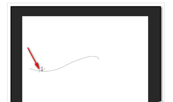 2、再点“文字”工具图标“T”;光标放在波浪线路径上,光标呈现如图中所示的样子;