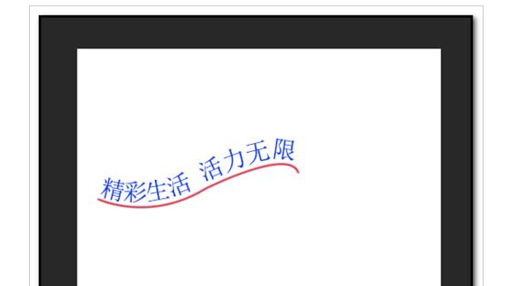 3、光标点下然后在波浪线路径上打字了;比如输入“精彩生活,活力无限”;