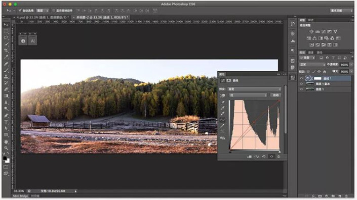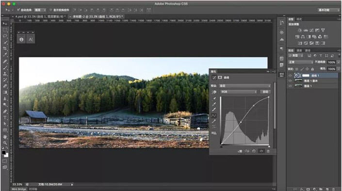 2,在PS里新建曲线图层,调节RGB曲线成“S”型,提亮,压暗,增加图像的对比度,也可以使用比较复杂的双通道曲线增加对比度,看个人喜好。