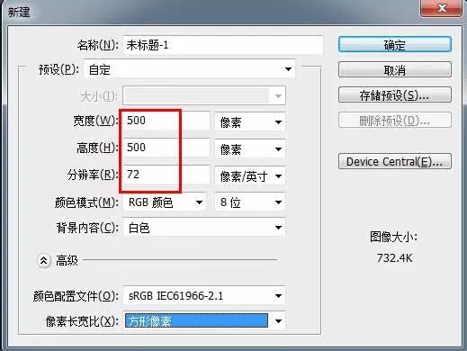 一、打开PS,新建一个500*500,分辨率为72的文档,设置背景色为白色。