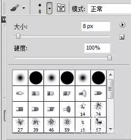 三、新建一个图层,设置画笔工具大小为8像素,硬度为100,设置前景色为红色。