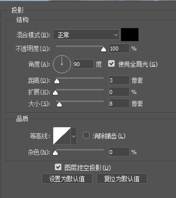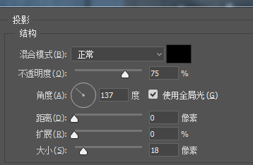 2.在封面矩形填充# 000000到# 6d6d6d的渐变,混合模式为叠加,40%不透明度;投影数值如图,或按自己感觉调整。