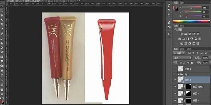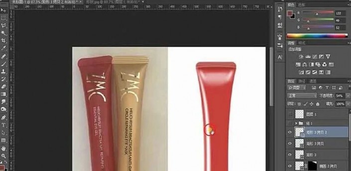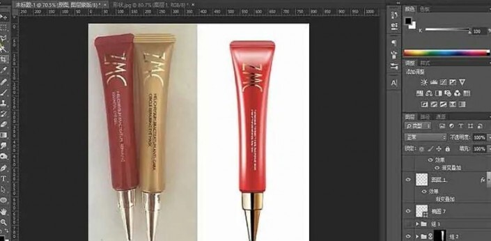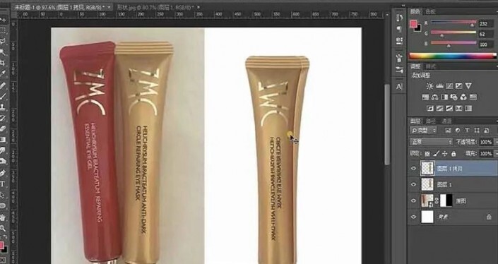 1.使用钢笔工具抠出眼霜,放到画布另一侧。