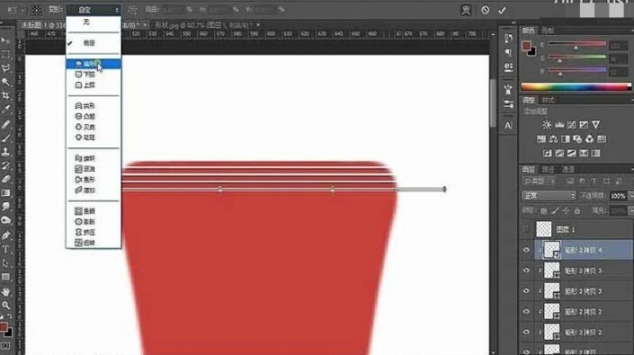 6.最下面的有一个弯曲的形状,使用变形工具里面的【扇形】,调整大小。