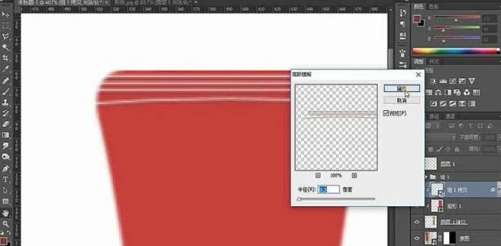 9.使用【矩形工具】绘制膏体的反光部分,使用【变形工具】调整形状,执行羽化,融合画面。
