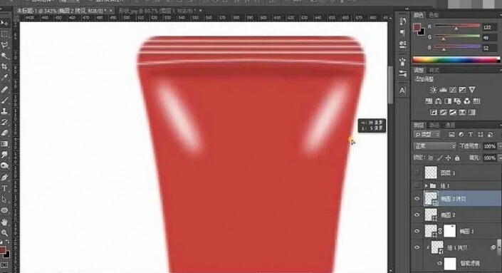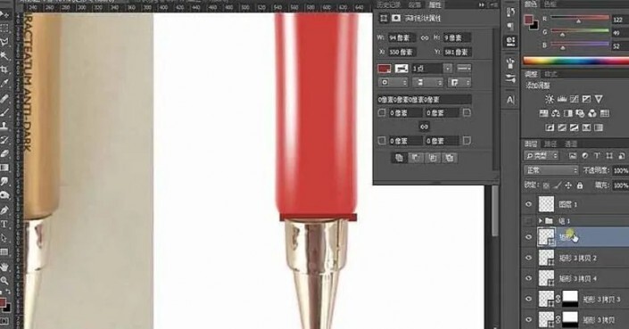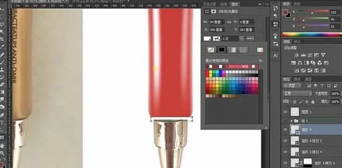 10.调整高光的范围,使用【矩形工具】绘制膏体下部转折部分。
