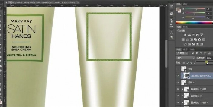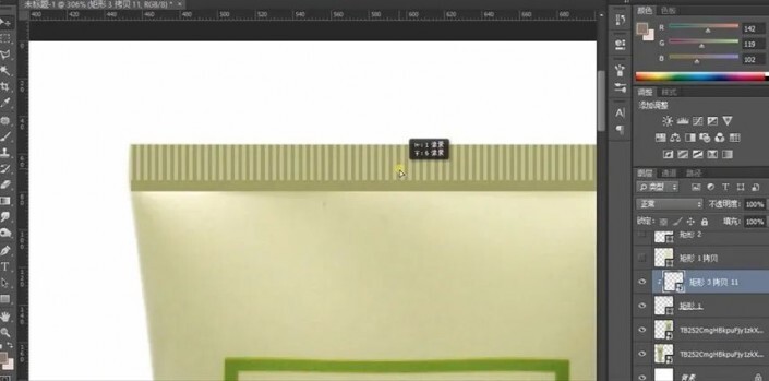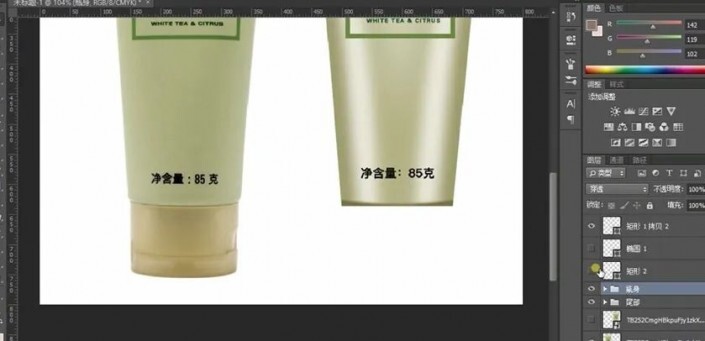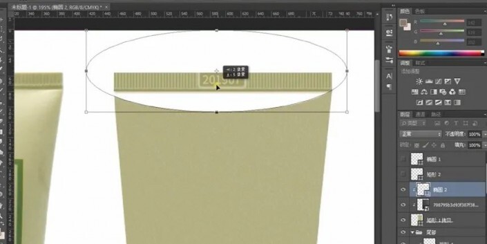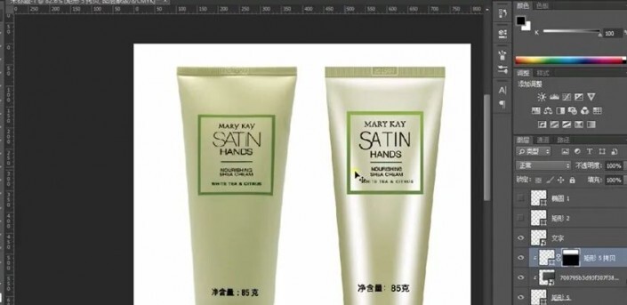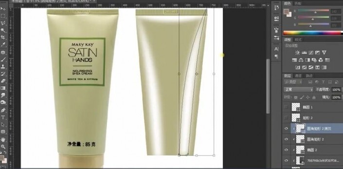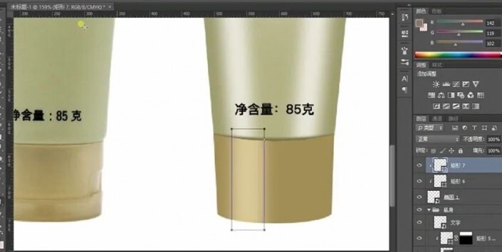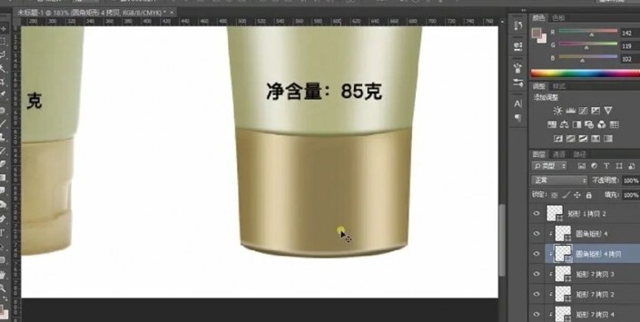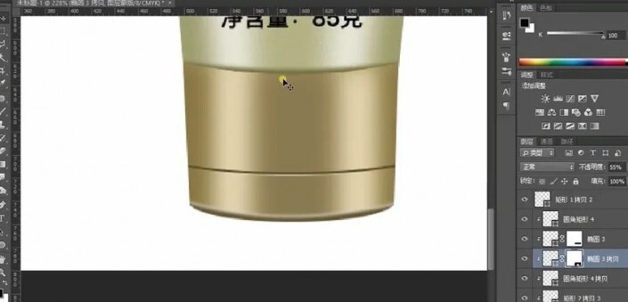 12.ctrl+T把瓶盖部分调整一些贴合罐体,做一个矩形填充白色,向下做剪贴蒙版,对白色矩形做适当羽化。