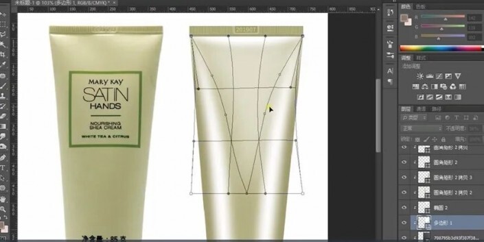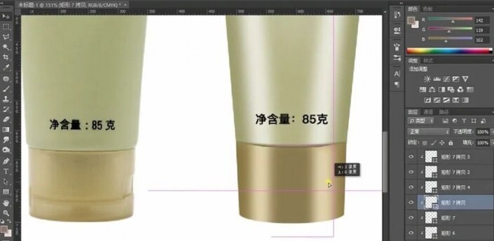 13.复制一层放在瓶盖的另一边,中间按照同样的方法做深色矩形羽化。