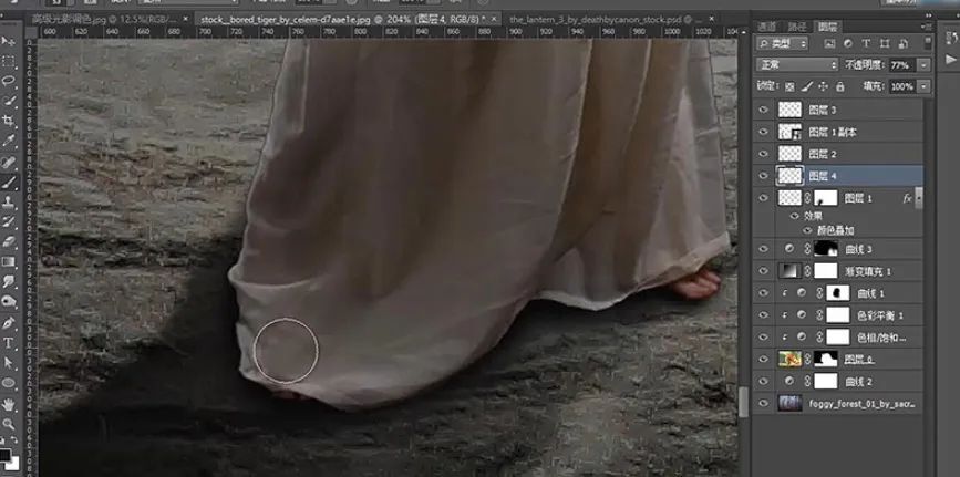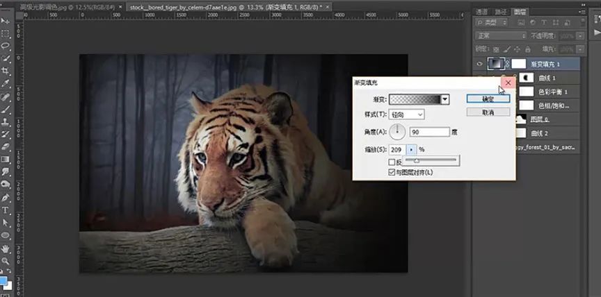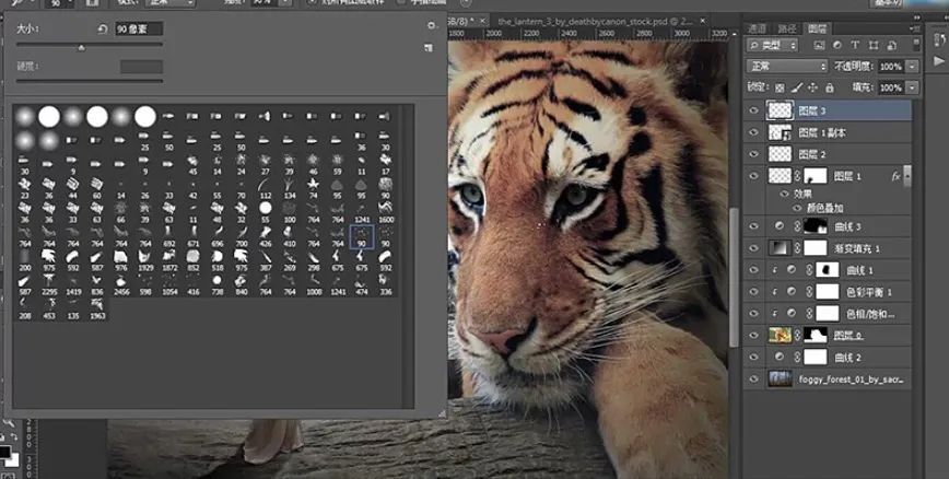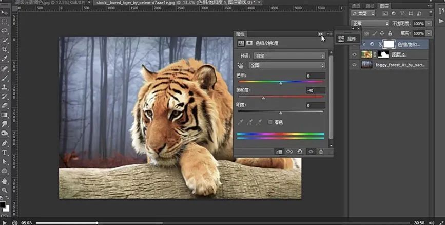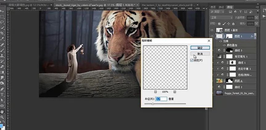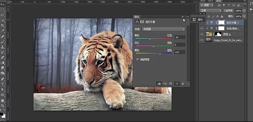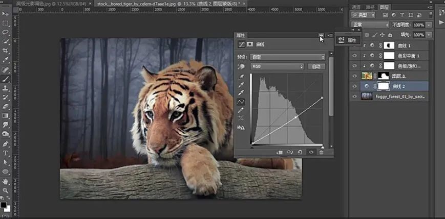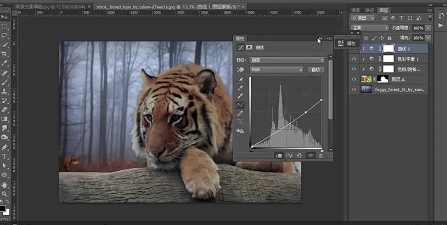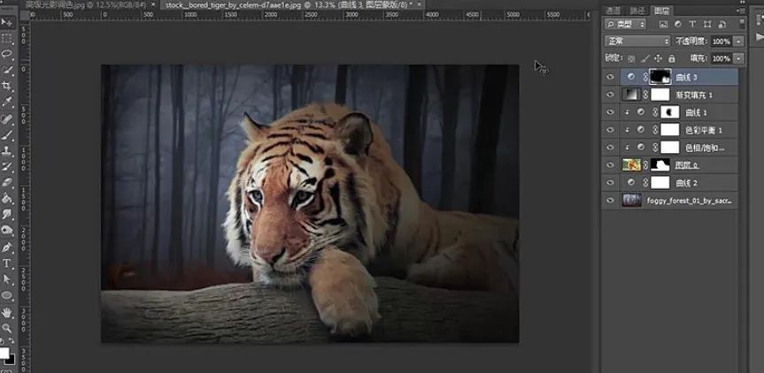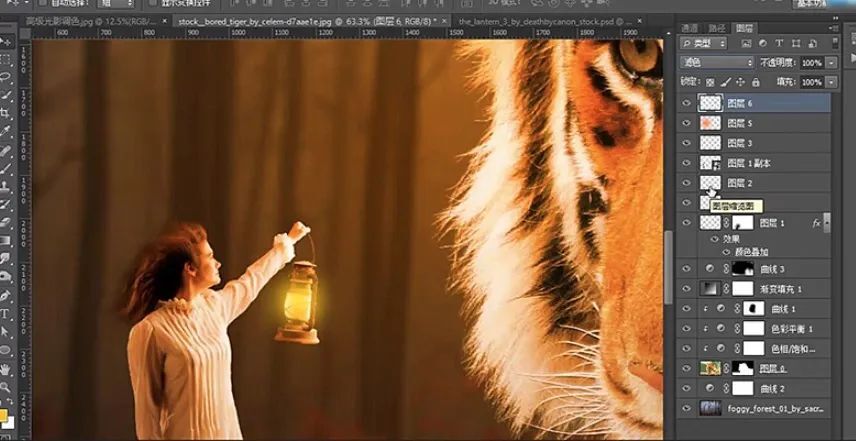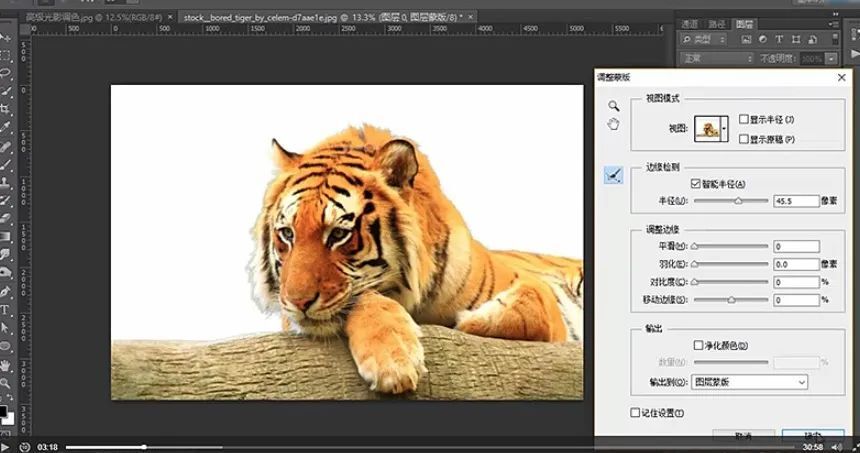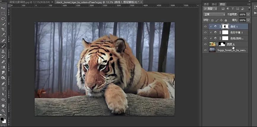 打开文件把老虎和树干载入选区点击添加蒙版http://www.yuucn.com/tags/38847/,右键点选调整蒙版,用画笔融化边缘;