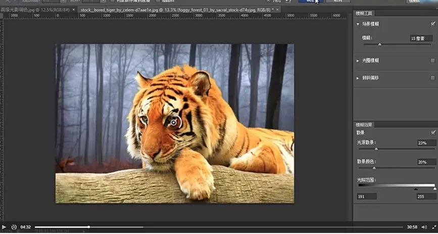 导入背景素材水平翻转后调整位置大小,执行滤镜-模糊-场景模糊,参数如图示;