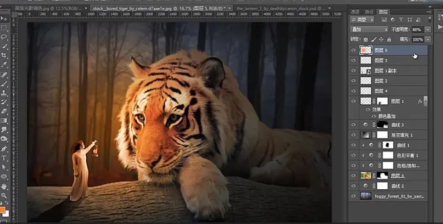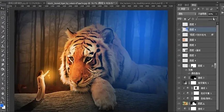 场景合成,老虎与人的海报合成及光影调色_www.yuucn.com