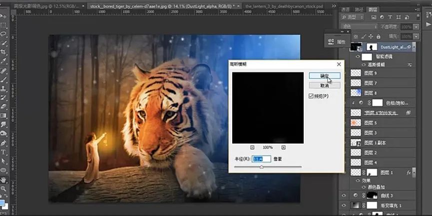导入光斑素材,调整大小模式为滤色,创建图层蒙版擦除多余的地方,然后执行高斯模糊,参数如图示;