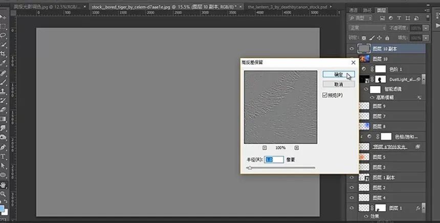 调整一下灯光光源,然后盖印图层并复制一层,执行滤镜-其他-高反差保留,参数如图示,模式为线性光;