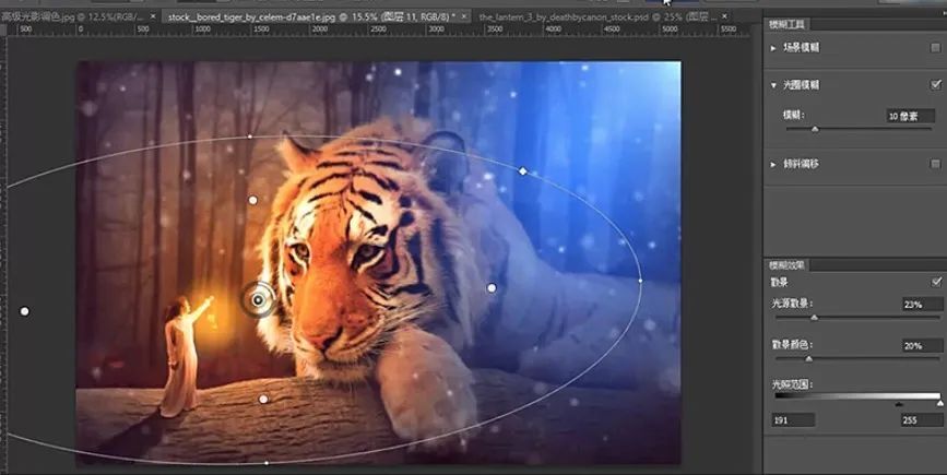 再次盖印图层,执行滤镜-模糊-光圈模糊,参数如图示,完成。