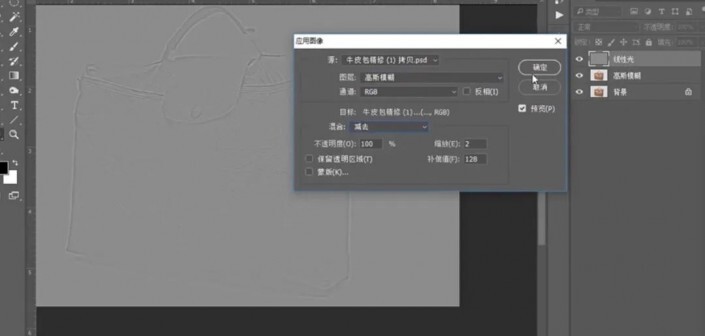 3、[选择]线性光图层,单击[图像]-[应用图层],具体参数如图示。具体效果如图示。