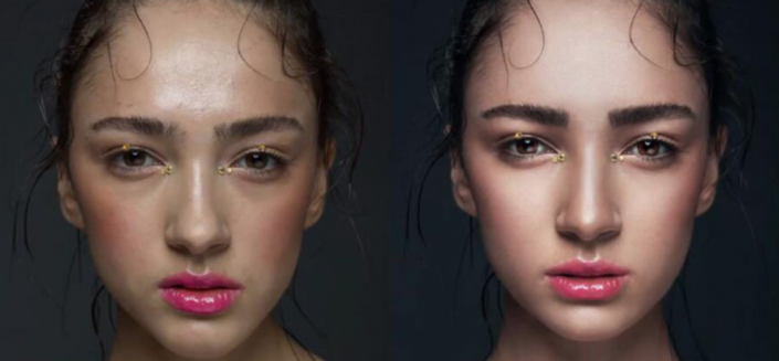 通过前后图的比较,我们可以看出来整个妆容更有立体感,五官更加的精致立体,通过具体练习来操作一下吧,相信同学们通过实际的操作,可以制作的更好。