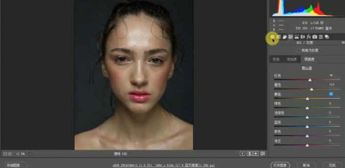 4、单击【HSL】-【明亮度】,具体参数如图示。具体效果如图示。