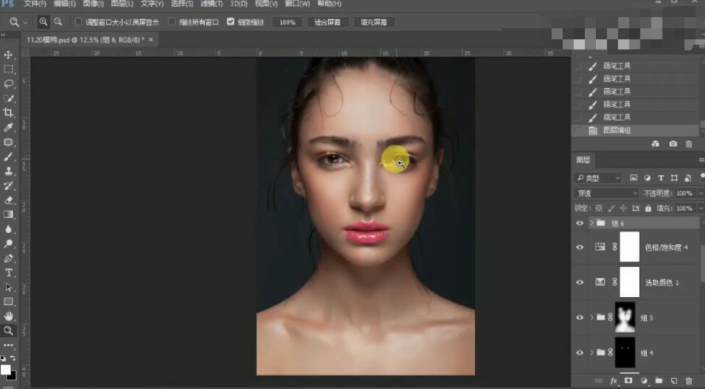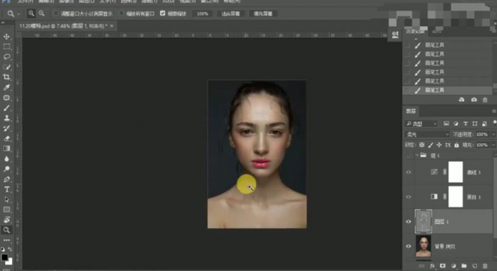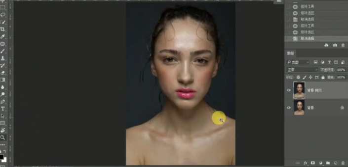 5、单击【打开图像】,【复制】图层,使用【修复工具】修复人物瑕疵区域。具体效果如图示。