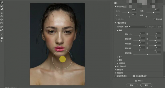 6、单击【滤镜】-【液化】,具体参数如图示,调整人物轮廓细节。具体效果如图示。