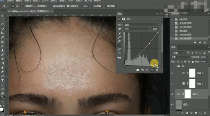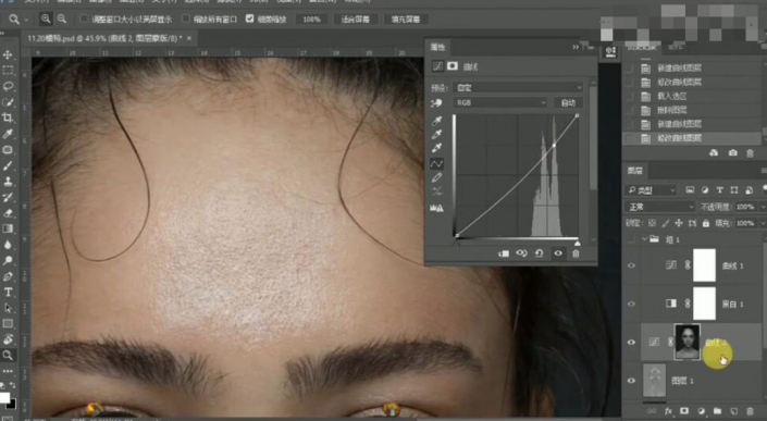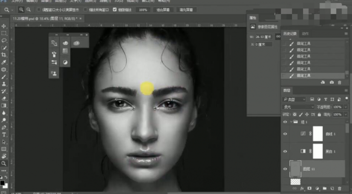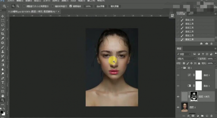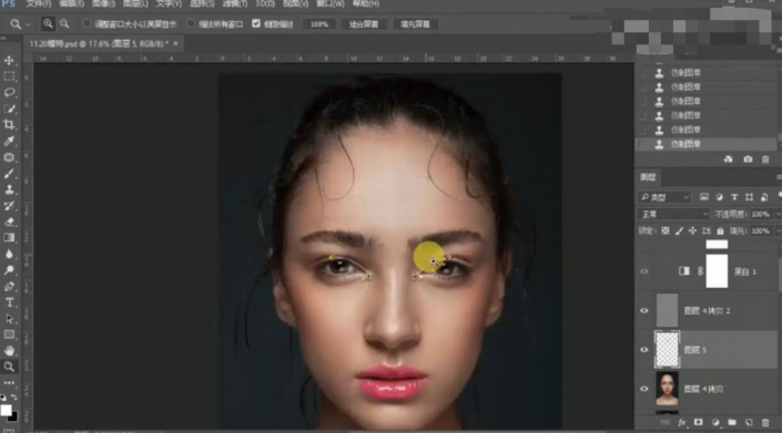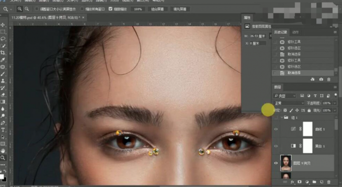 36、按【Ctrl+Shift+Alt+E】盖印图层,【复制】图层,使用【修复工具】修复眉毛细节。具体效果如图示。