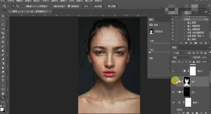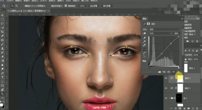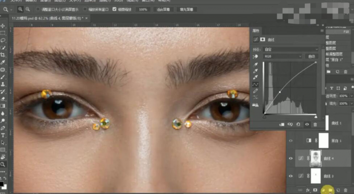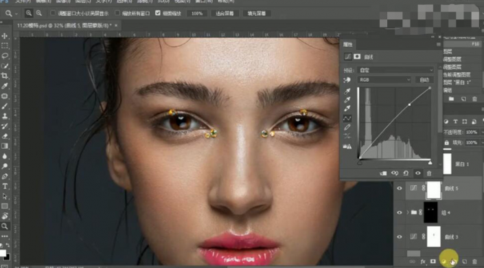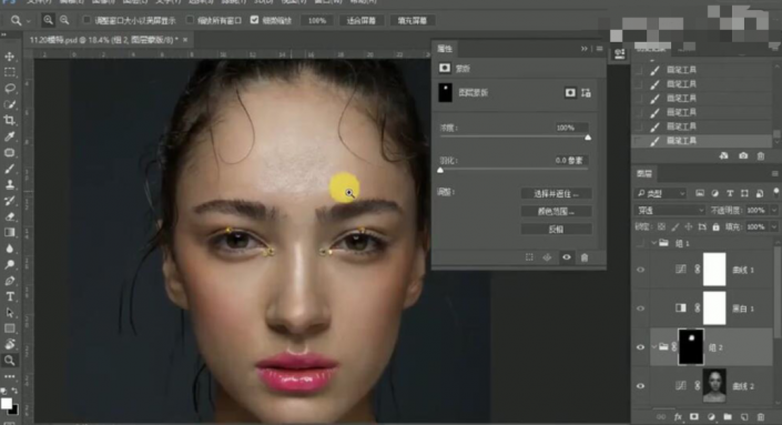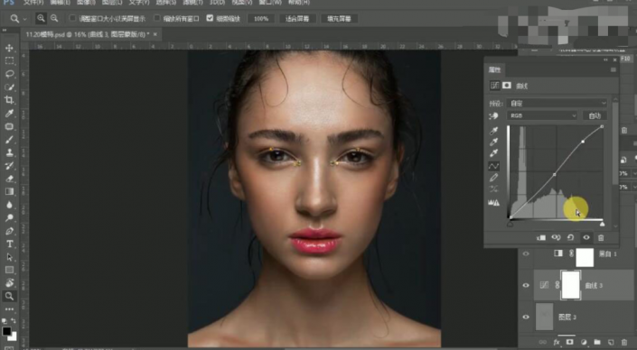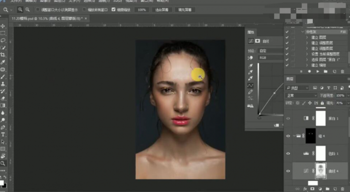 11、【编组】曲线图层,按Alt键单击【图层蒙版http://www.yuucn.com/tags/38847/】,使用【画笔工具】涂抹细节。具体效果如图示。