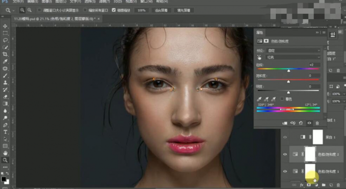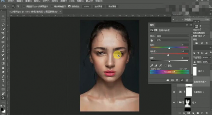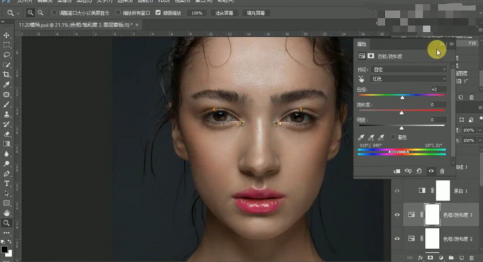 29、【新建】色相饱和度图层,【选择】红色,具体参数如图示。具体效果如图示。