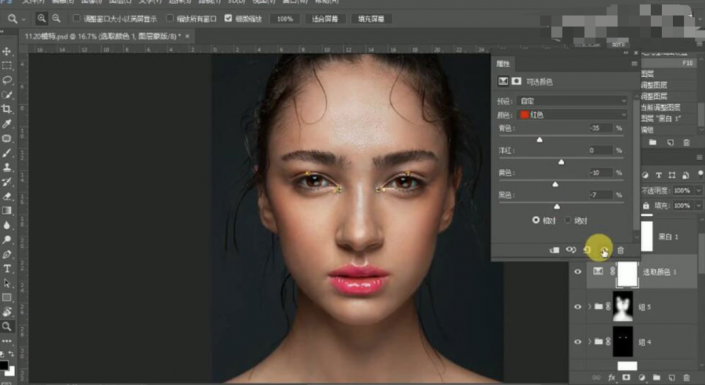 20、单击【图层蒙版】,使用【画笔工具】涂抹细节。具体效果如图示。