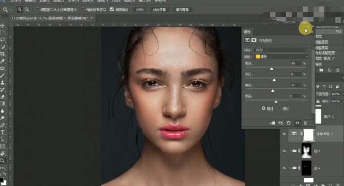 23、【选择】关联调整图层,按【Ctrl+G】编组,按Alt键单击【图层蒙版】,使用【画笔工具】涂抹多余的部分。具体效果如图示。