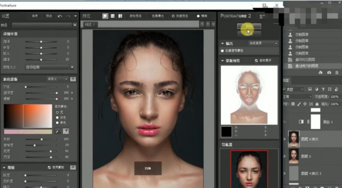 33、按【Ctrl+Shift+Alt+E】盖印图层,【复制】图层,单击【滤镜】-【磨皮插件】,具体参数如图示。具体效果如图示。