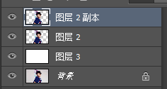 第二步:在背景层后面添加一个空白图层,填充为白色,再复制图层2,将图层2命名为效果,图层2副本命名为人。