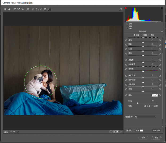 5、单独把这个人圈出来,这个时候会发展除了这个人之外的区域全部都会给这个曝光变暗,然后我们可以适当调整一下位置,点击确定。