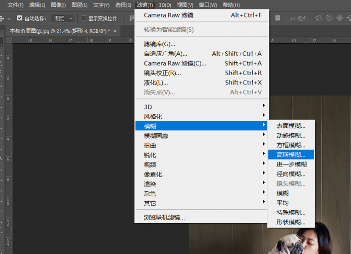 10、接下来要塑造一个光影,光影都比较柔,点击上方滤镜,选择模糊中的高斯模糊。