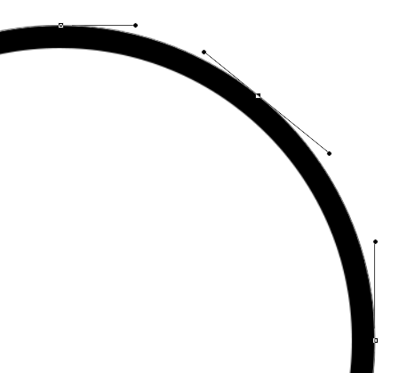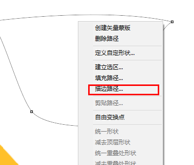 4、选择直接选择工具,选择两个锚点中间的曲线