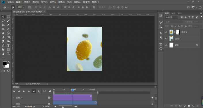 首先我们来了解一下什么是微动,微动:即静态照片与动态视频或摄影相结合,达到动中有静的效果。但需注意的是通常情况下,整张作品的动态区域不得超过50%,微动多用于摄影、电商、广告、企业官网、产品宣传等线上渠道。微动摄影之所以吸引人,是因为它不仅只有“微动”的部分吸引你的眼球,还有的是图片想要表达的作者内心深处的世界。从你第一眼看到这张图片的时候,你会被局部运动的地方吸引住,然后你就想看到它一直重复的动作,随后会联系整个图片去联想作者的创作意图,是十分具有禅意的一件事。我们了解微动摄影前,先要学会欣赏和品味它,一起通过PS制作夏日清爽柠檬微动海报吧。