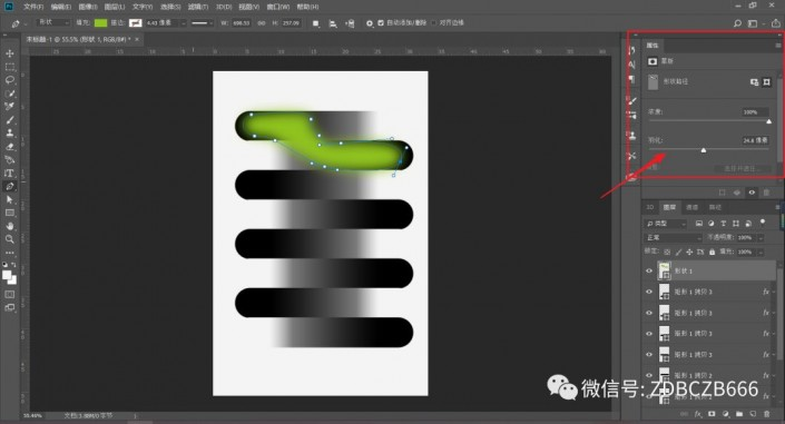 在其属性栏中,调整羽化参数,并适当调整透明度,如图所示: