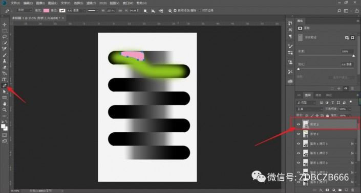 继续选择钢笔工具,模式更改为“形状”,取消描边,填充适合的颜色,勾勒出造型: