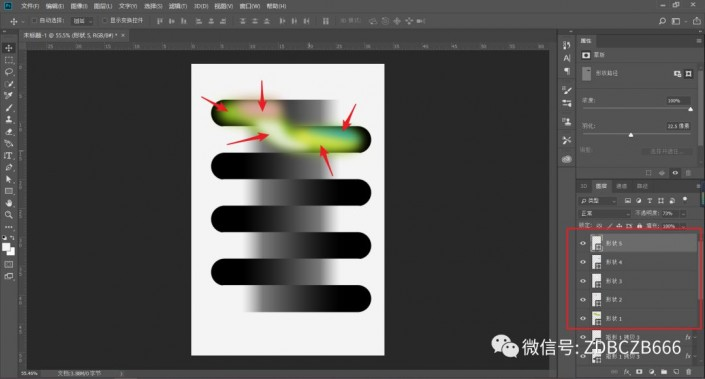 将其偶数层的渐变方向在图层样式的渐变叠加中调整反向,如图所示: