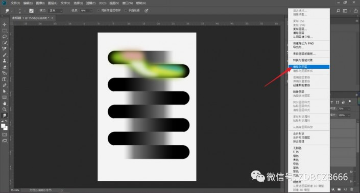 全选钢笔工具勾勒出的颜色图层,单击右键选择栅格化图层: