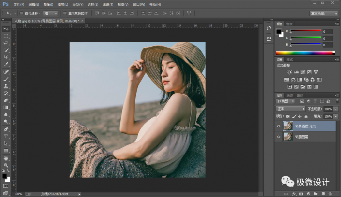 打开PS,按Ctrl+O将人物的背景图层放入;接着按Ctrl+J复制拷贝一下背景图层,就得到“背景图层 拷贝”图层