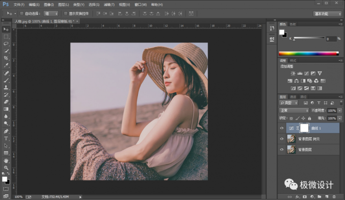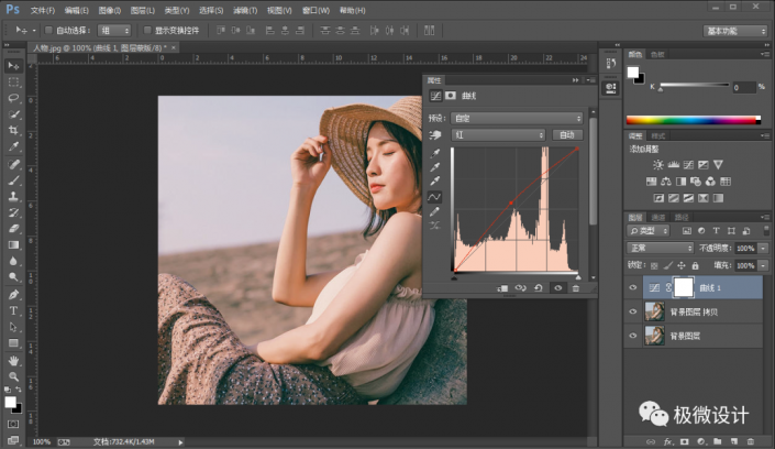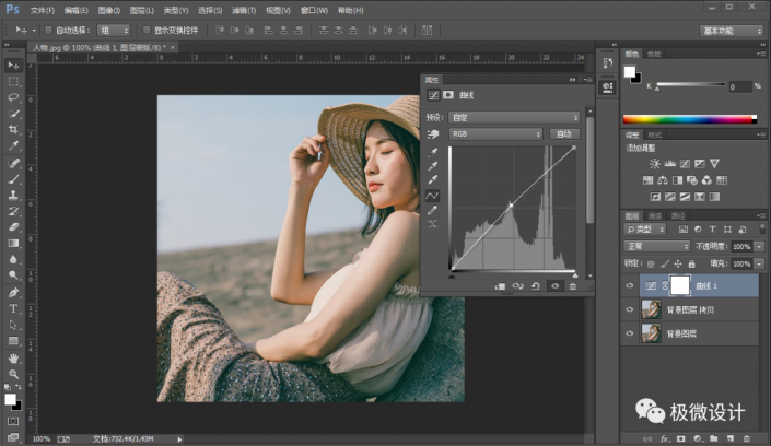 点击选择:图层 >新建调整图层 >曲线,就得到“曲线 1 ”图层;接着在“曲线”调整面板